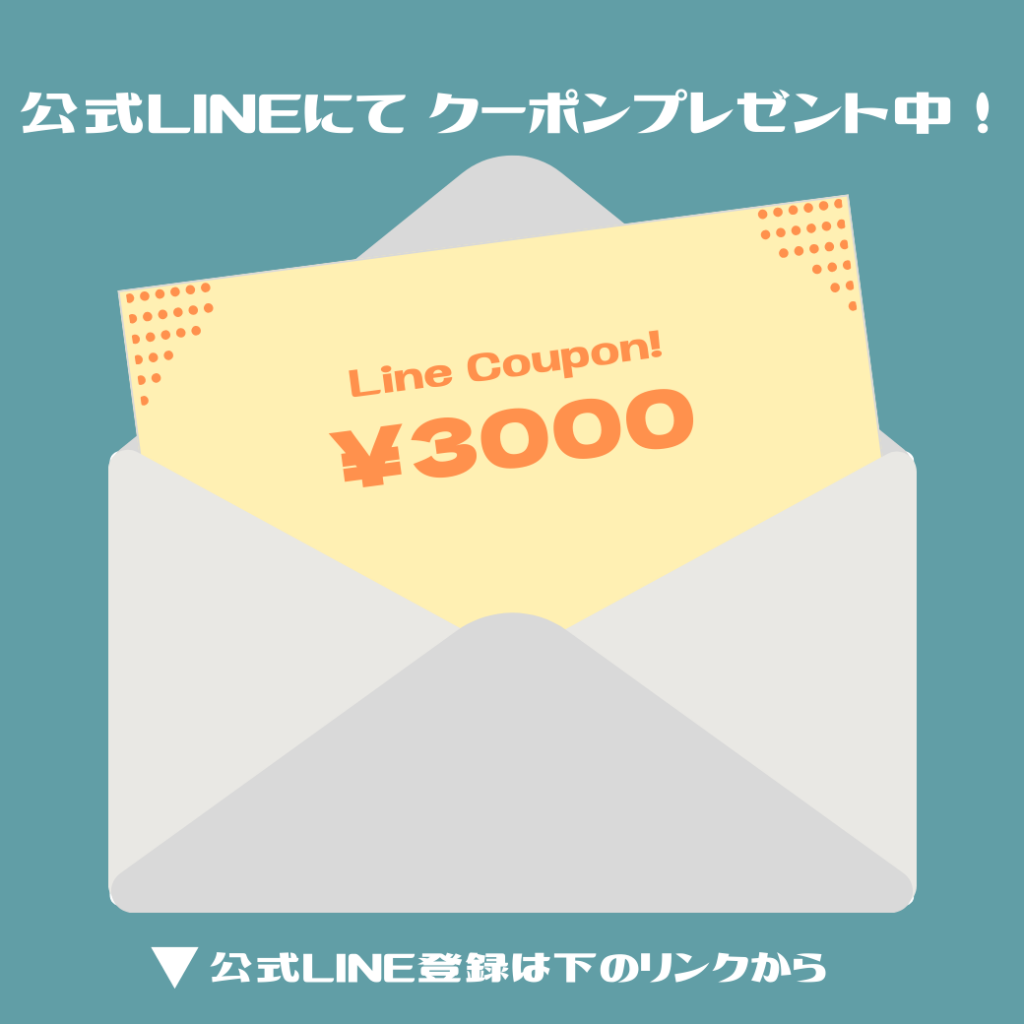 いつでも使える¥3000分クーポンプレゼント