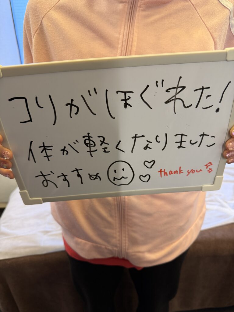 初めて伺いました。柔らかい空気と落ち着いた話し方で、最初から安心してお任せできました。 手の温かさとリズムが心地よく、呼吸が深くなるのを感じました。 終わったあとは体の軽さだけでなく、気持ちまで穏やかになりました。